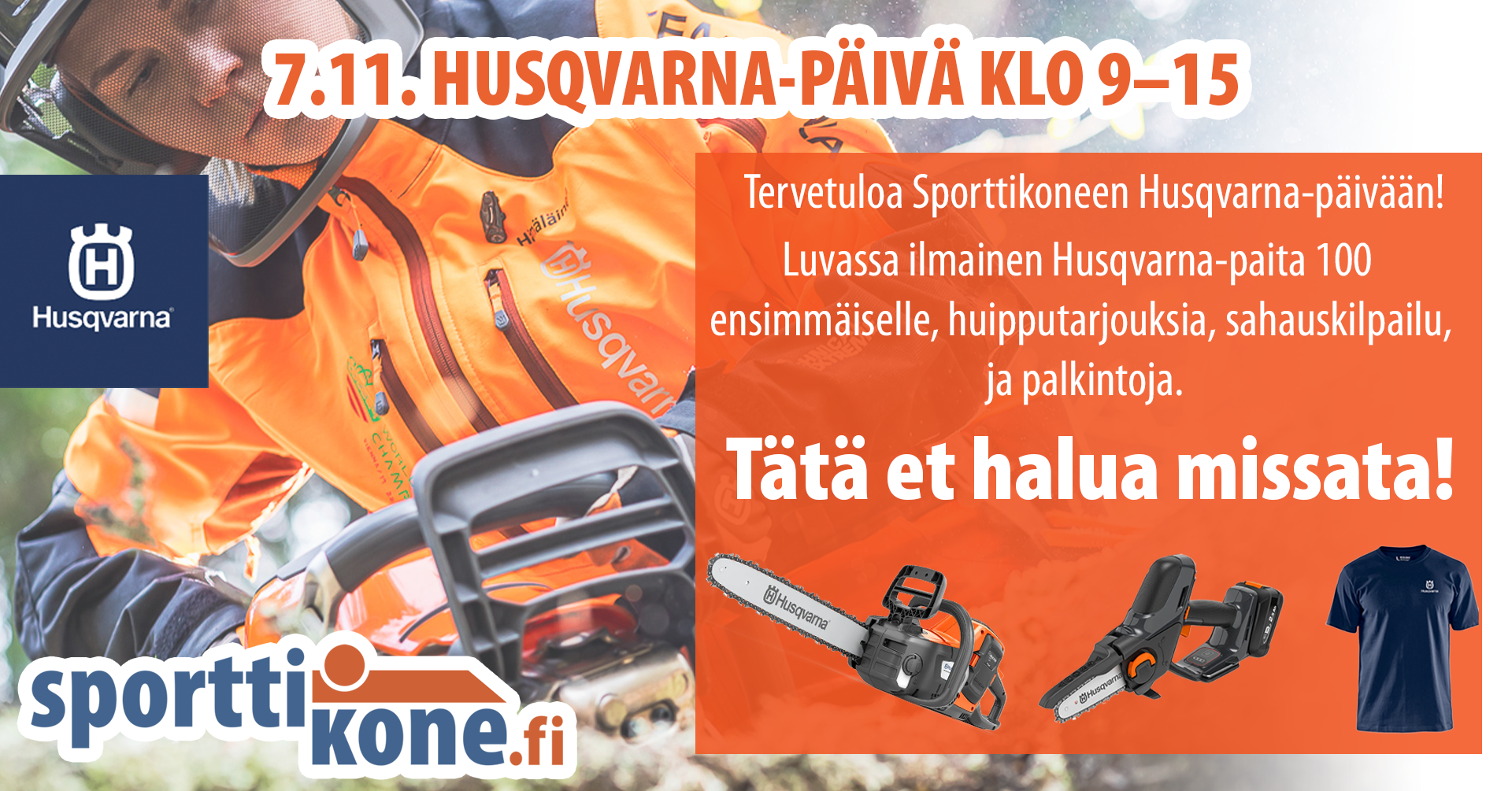 Ainutlaatuisia tarjouksia, sahauskilpailu ja paljon muuta Sporttikoneelta ja Husqvarnalta